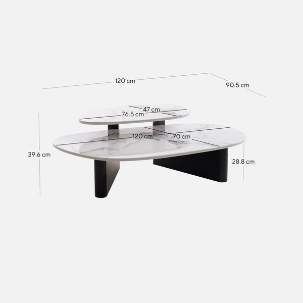 Our marble table tops are a natural stone that each have their own unique imperfections and characteristics. Any variations in colour, texture, polish and pattern are not a fault and should be appreciated. Please note that polished marble is porous, so contact with liquids or hot beverages may cause the marble to mark. Make sure to wipe away any spills immediately using water or a mild cleaner. We recommend the use of placemats and coasters to further protect the integrity of the marble.120cm (W) x 90.5cm (D) x 39.6cm (H)