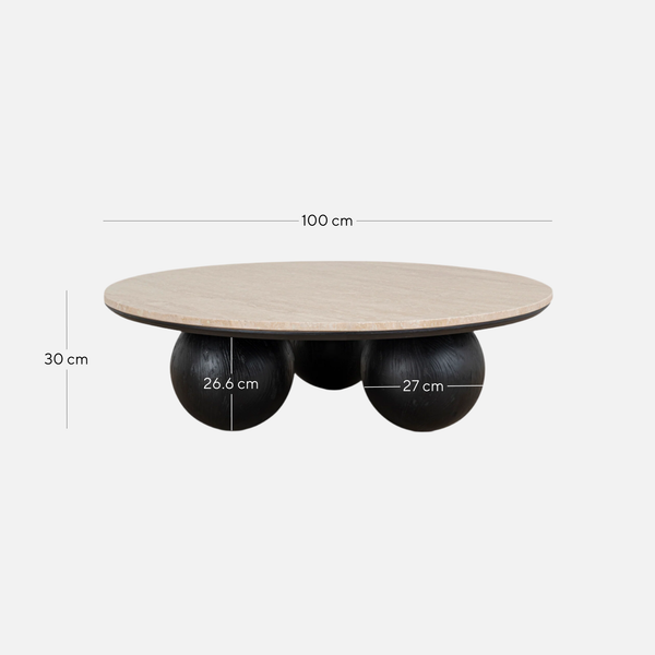 CCF10430-NI 100cm Round Travertine Coffee Table - Black