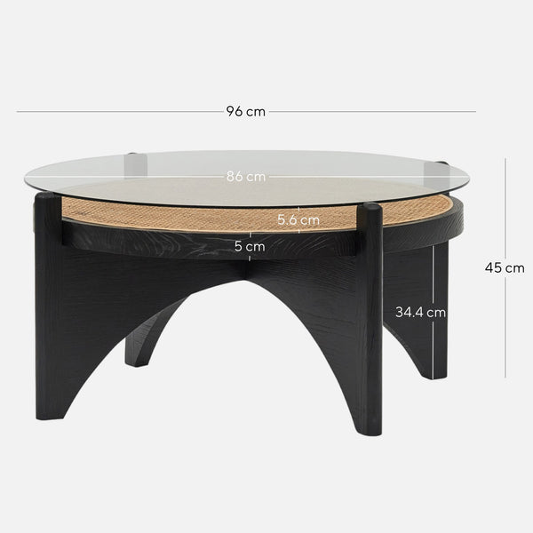 CCF8141-NI 96cm Round Glass Coffee Table - Black