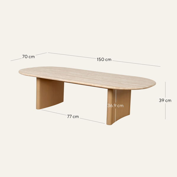 CCF8739-KK 1.5m Travertine Top Coffee Table - Creme Ash