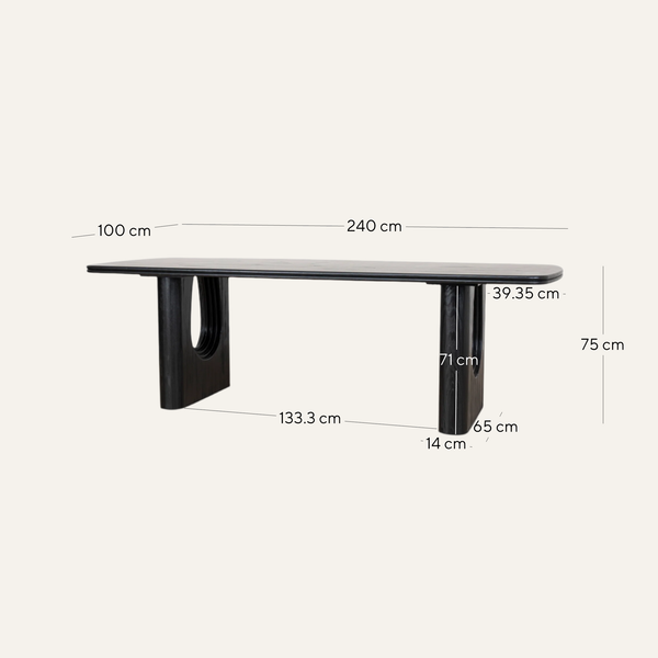 CDT10260-NI 2.4m Recycled Fir Dining Table - Full Black