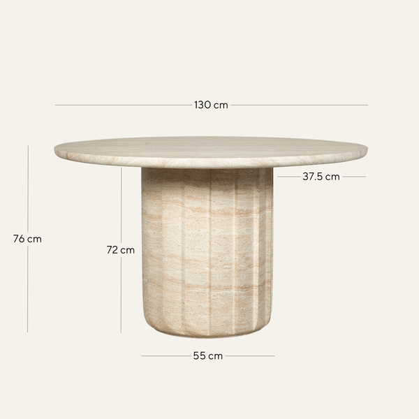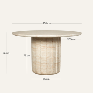 CDT12284-CO 1.3m Round Concrete Dining Table - Light Travertine Look