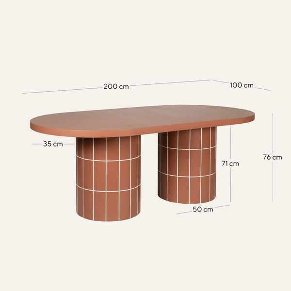 CDT12299-CO 2m Concrete Oval Dining Table- - Terracotta