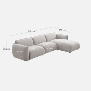 CLC10239-IG 3 Seater Right Chaise Sofa - Clay Grey