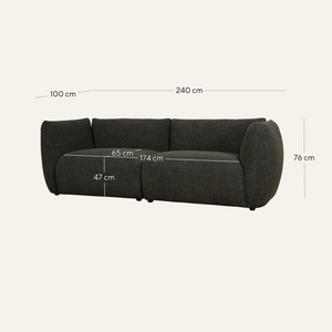240cm (W) x 100cm (D) x 76cm (H)