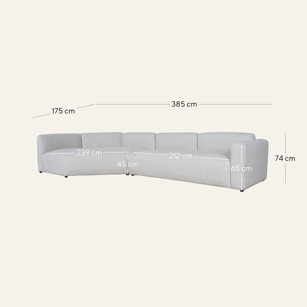 Left Arm Sofa: 212cm (W) x 100cm (D) x 74cm (H)