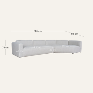 Left Arm Sofa: 212cm (W) x 100cm (D) x 74cm (H)