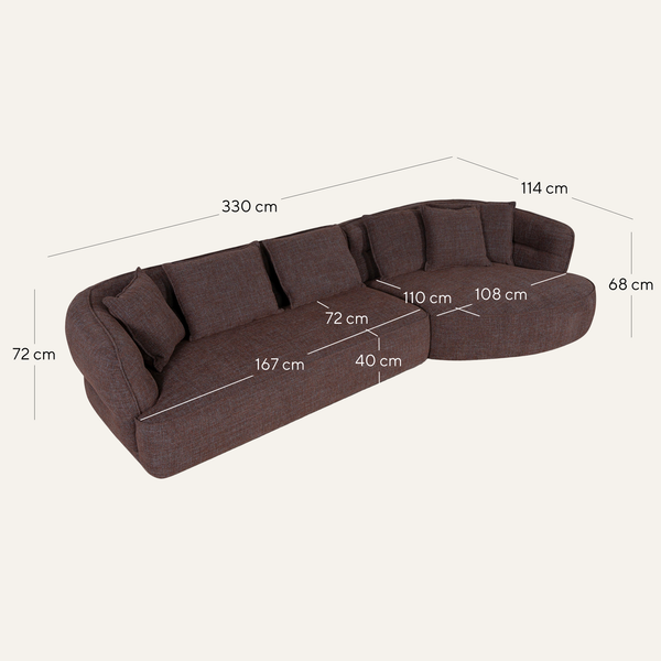 Sofa Seat: 167cm (W) x 72cm (D) x 40cm (H)