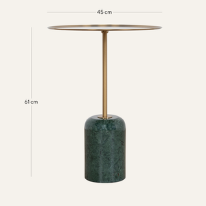 CST10320-NY 45cm Brushed Gold Side Table - Green Crystal