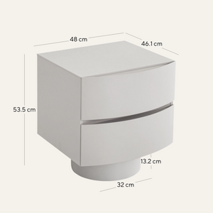 - Sculptural silhouette with curved drawer fronts