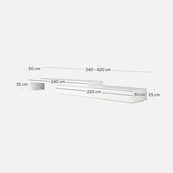 240cm - 420cm (W) x 50cm (D) x 35cm (H)