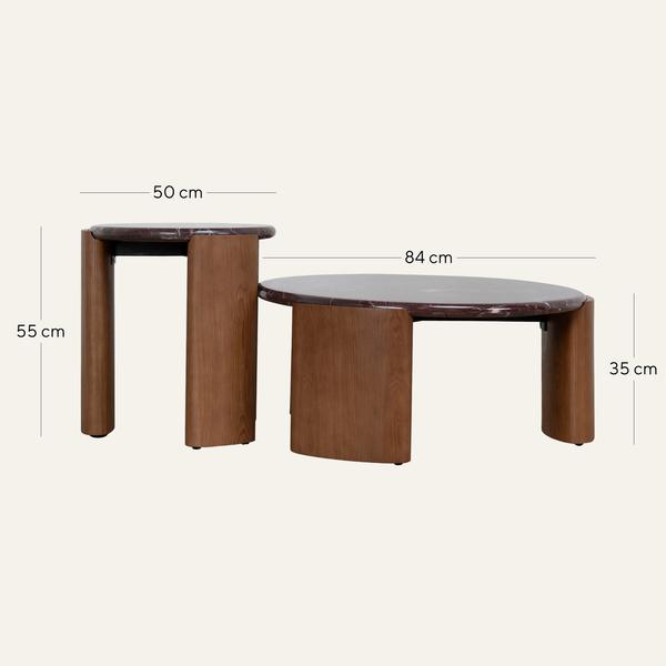 CCF10982-NY Nested Rosso Levanto Marble Coffee Table - Walnut